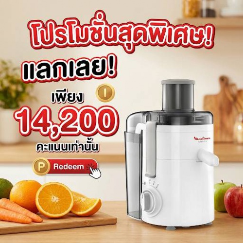โปรโมชั่น เครื่องสกัดน้ำผลไม้ TEFAL ลดคะแนนเหลือเพียง 14200 คะแนน